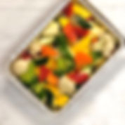 Contains: Yellow Squash, Zucchini, Broccoli, Cauliflower, Red Pepper, Carrots, Olive Oil, Salt, & Pepper